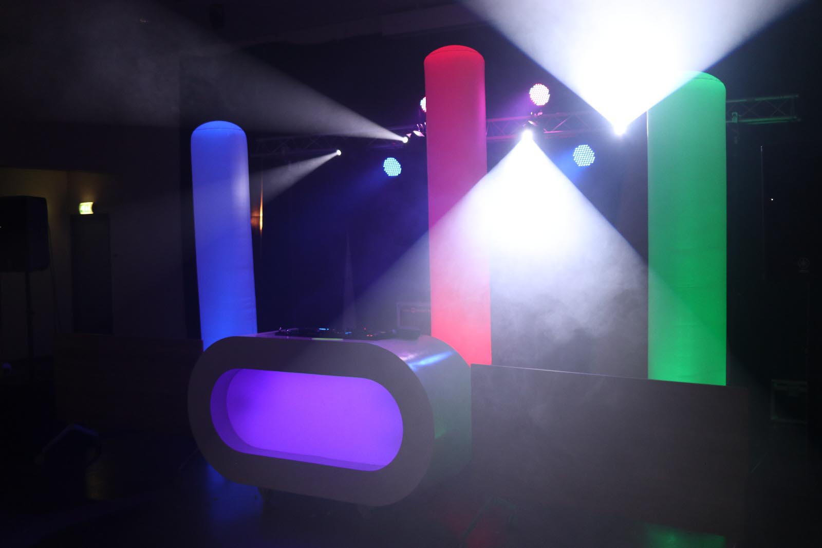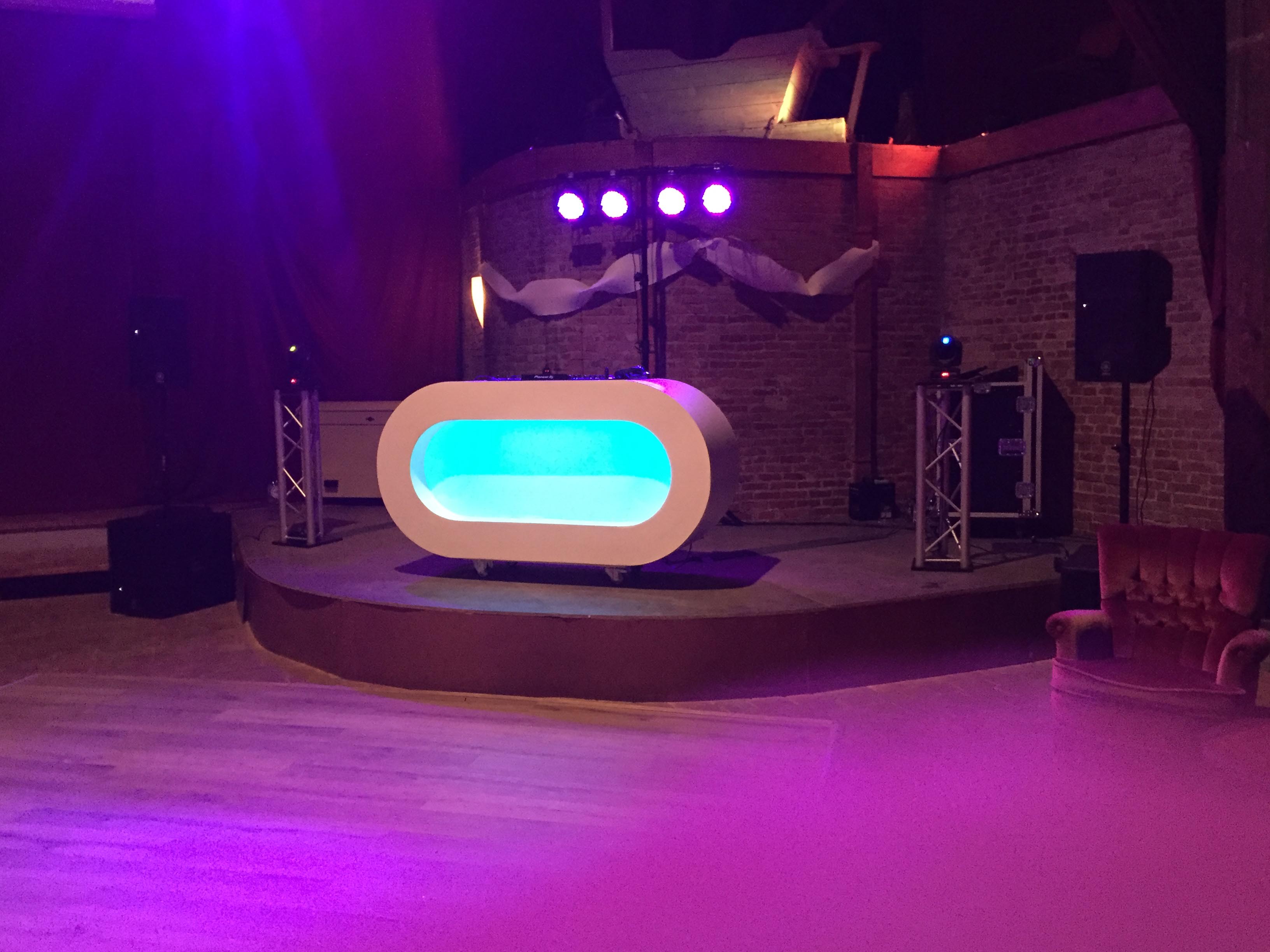 Uiteraard gaat ons dj meubel 'White Led' ook mee.